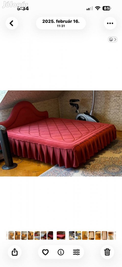 Használt franciaágy ágynemű tartóval.