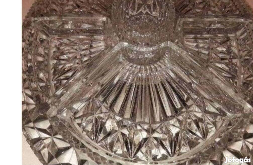 Hatalmas többrészes üveg asztalközép, az alsó tálcán sérülés külön fotózva!