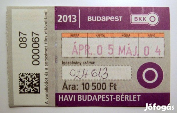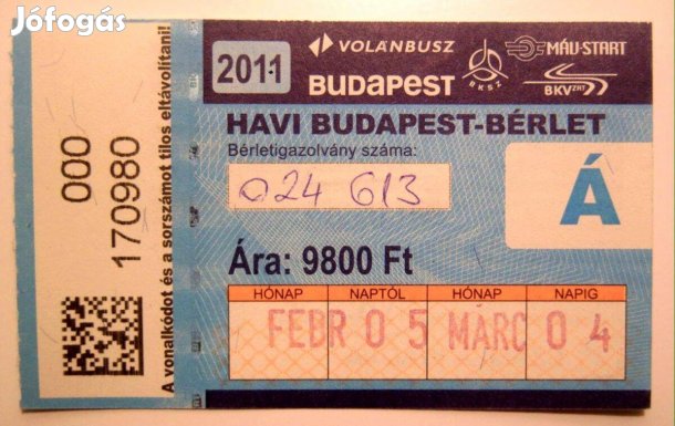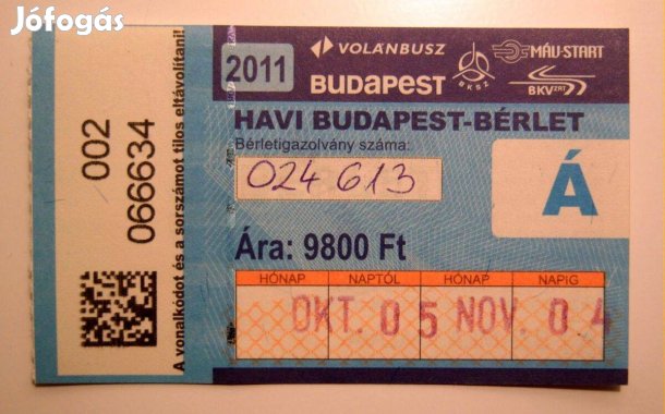 több, mint egy hónapjaHavi Budapest Bérlet Felnőtt 2012 Május
