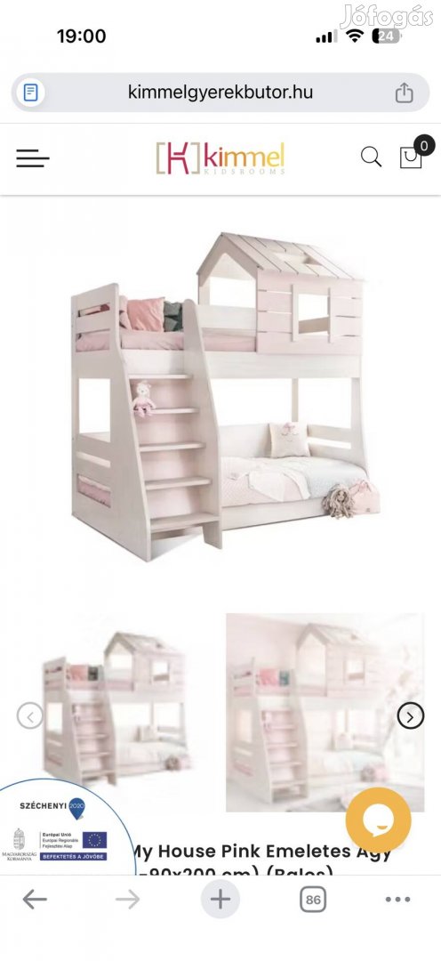 Eladó a képen látható típusú, 3 éve vásárolt Kimmel házikós emeletes ágy. A holnap szerint jelenlegi ára 400ezer Ft