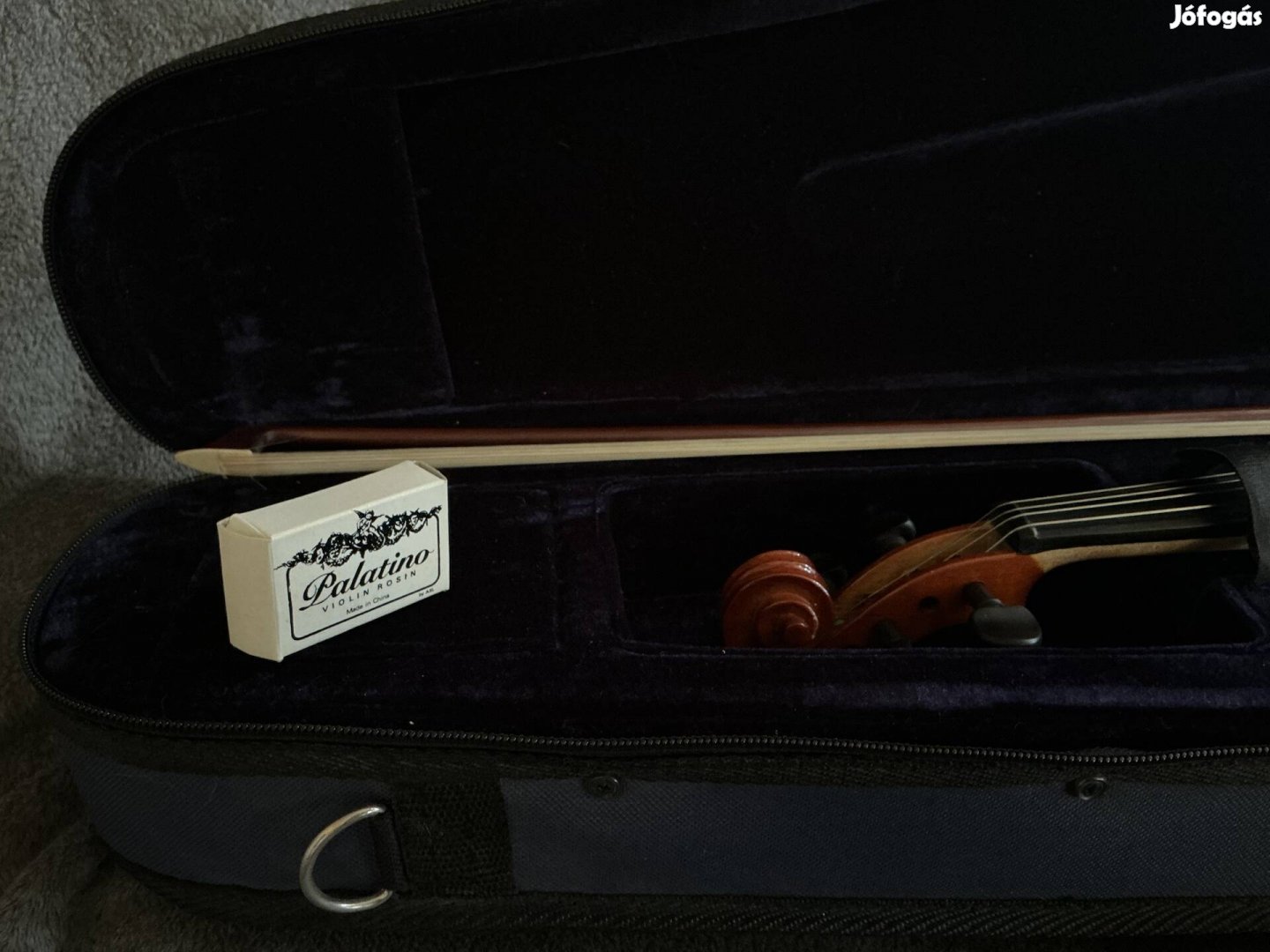 Gyönyörű állapotú Palatino 1/2-es hegedű szett: Tokkal, Vonóval, Gyantával