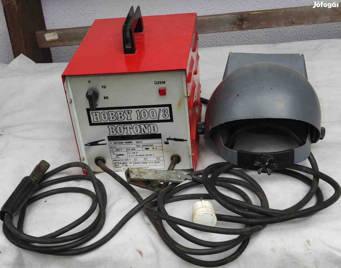 Hobby hagyományos hegesztő trafó , áramerősség kapcsolós ,elektróda fogós , testelő csipezes kábelek + védőpajzs
