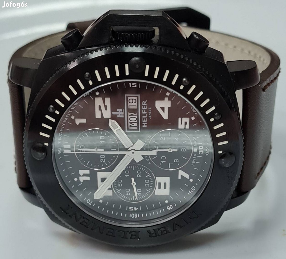 Helfer Elements Diver Automatic Chronograph, Day-Date, Ref: Hwdee0013, Dupla zafír, Koronazár, 100méteres, Kn.47mm. Lista ár: 1,8mft. Kiváló Állapotban! Csere beszámítás érdekelhet! Kérem tekintse meg további termékeim.