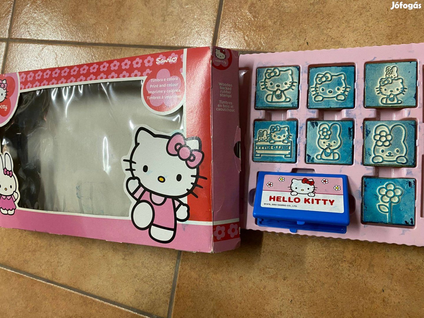A Hello Kitty nyomda szett leírása: 7 db gyermeknyomda különbözo Hello Kittyvel és nyomdapárnával.