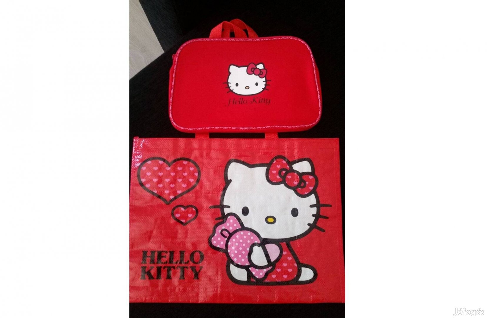 Vidám Hello Kitty szett utazáshoz, strandra vagy a mindennapokra! A nagy pakolhatós neszeszer (H&M) belül osztott, egyik oldalán két zsebbel (egyszer használt). Az egyterű táska (még új, nem használt, nincs márkajelzése) alkalmas strandra, bevásárláshoz is.