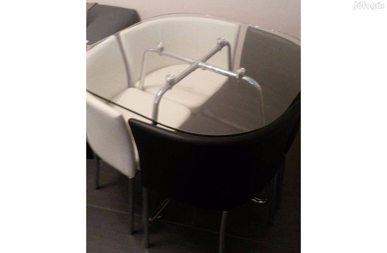 A legkisebb lakásokba tervezve, bárhol megállja a helyét, stílusos, kompakt és maga alatt tárolva a székeit, így nincs útban, nem vesz el feleslegesen az értékes térből. Sérülésmentes állapotban mind a 4 műbőr borítás, 2 fekete és 2 fehér székkel együtt költözés miatt eladóvá váltak.