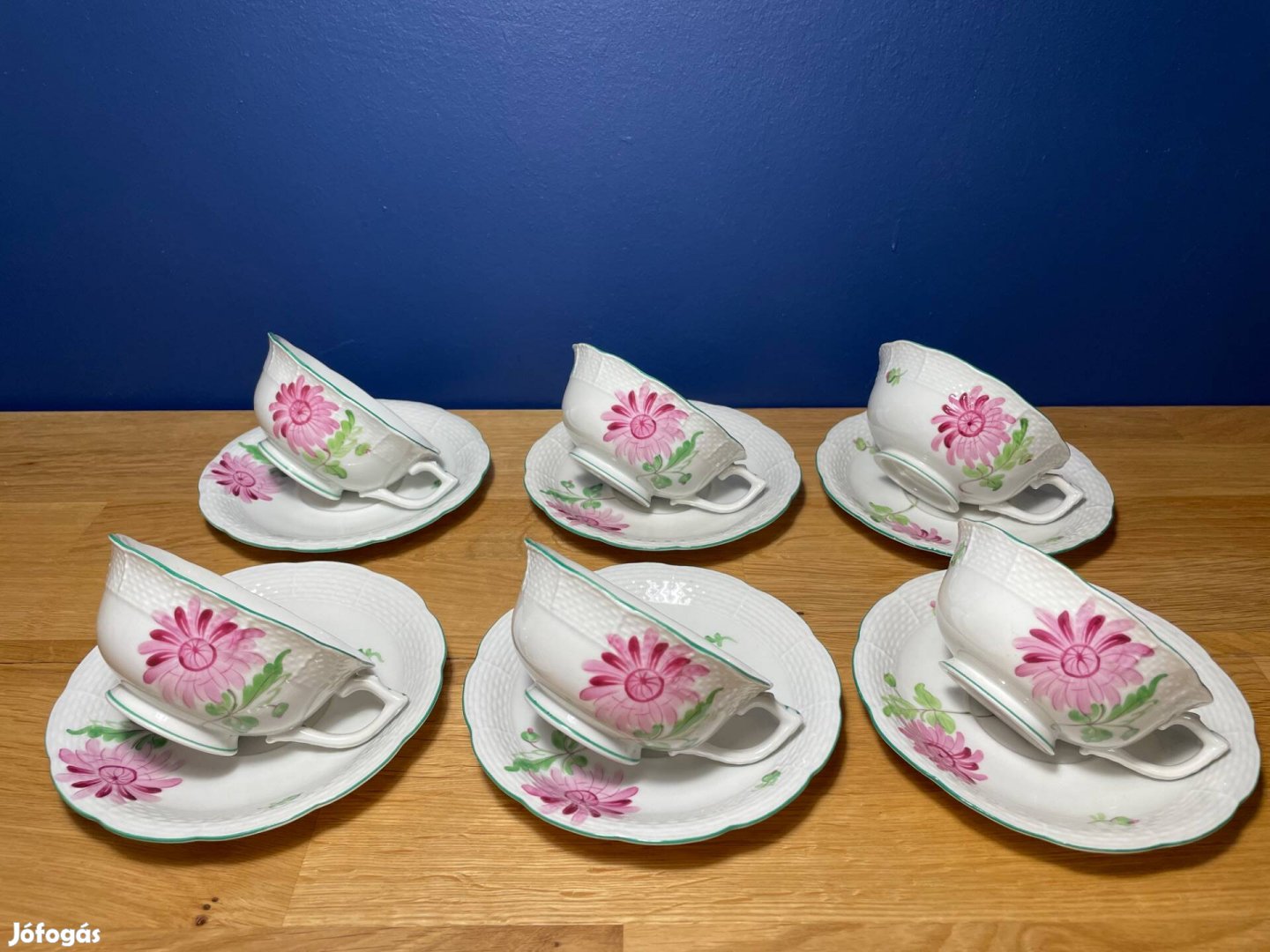 Eladó 6 db hibátlan, kopásmentes, jelzett Herendi Tertia őszirózsa mintás teáscsésze+alj.