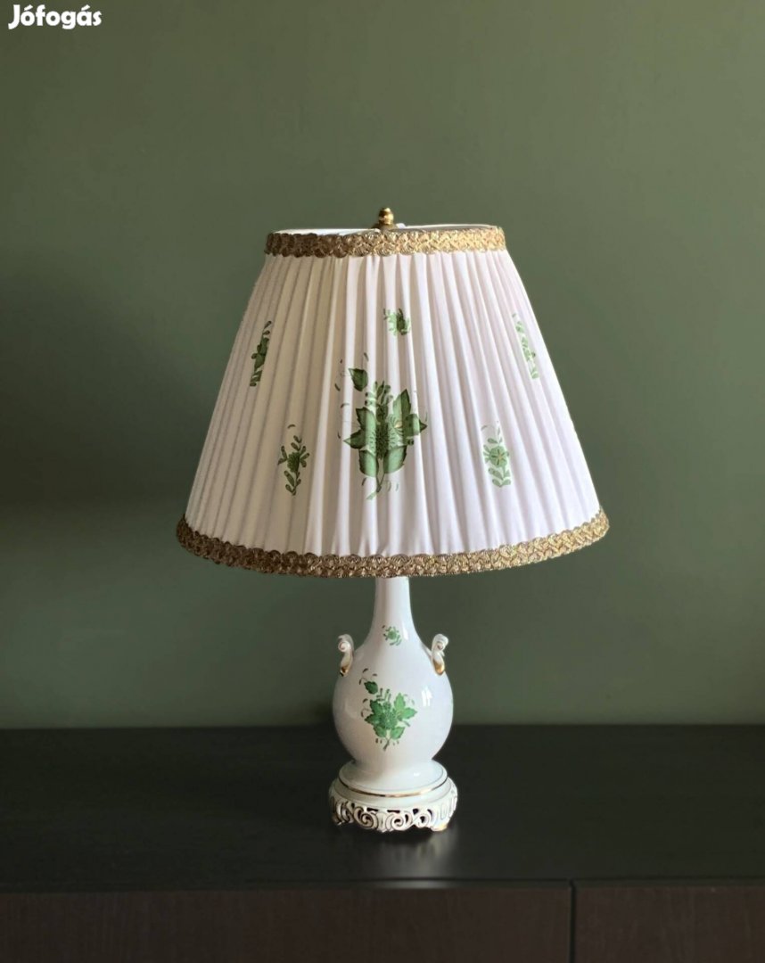 Eladó Herendi asztali lámpa, zöld Apponyi mintával. Lámpa mérete 29 cm + ernyő 29 cm