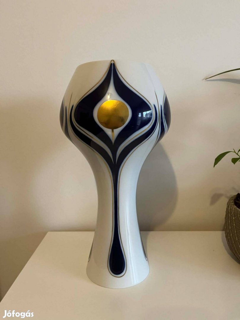 29,5cm hibátlan Herendi váza , modern mintás kék aranyozott pávaszemes.