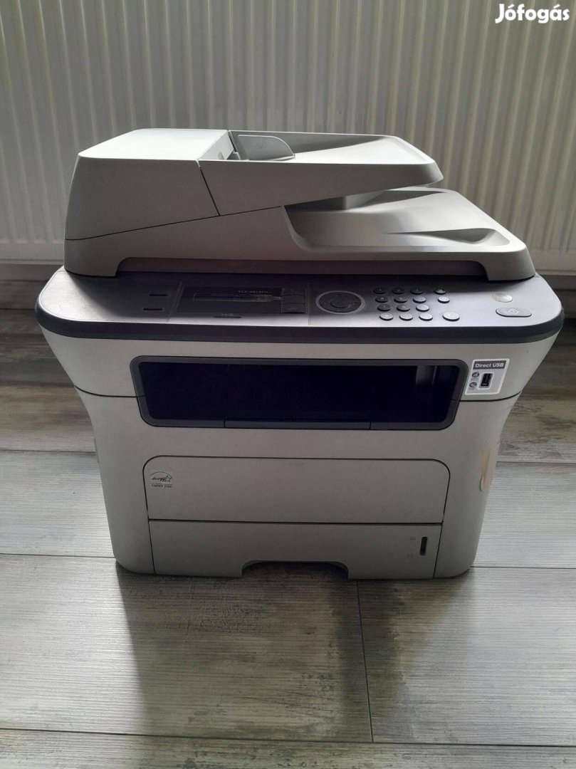 Hibás Samsung Scx-4828FN multifunkciós nyomtató, hibái: elakad a papír nyomtatásnál, az ajtó ki-be csukásával ez megoldódik, néha meggyűri a papírt, az ajtó jobb oldalán a rögzítő el van törve. A szkenner része jól működik.
