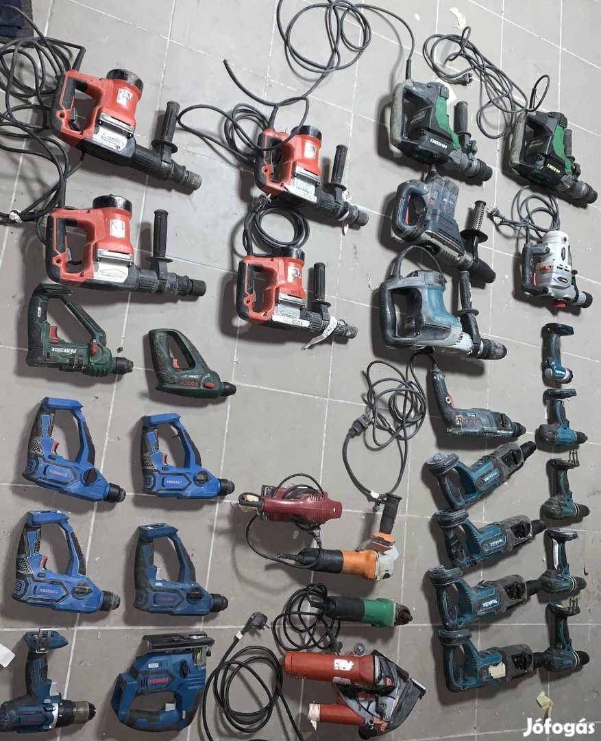 Elvihetőek a képen látható Hibás gépek, egy kettő még javítható lehet vagy alkatrésznek felhasználhatóak. Egyben elvihető, ár alkuképes, 2 hétig lesz elérhető, hajrá. Makita, Bosch, Hikoki, Makita Magtek,