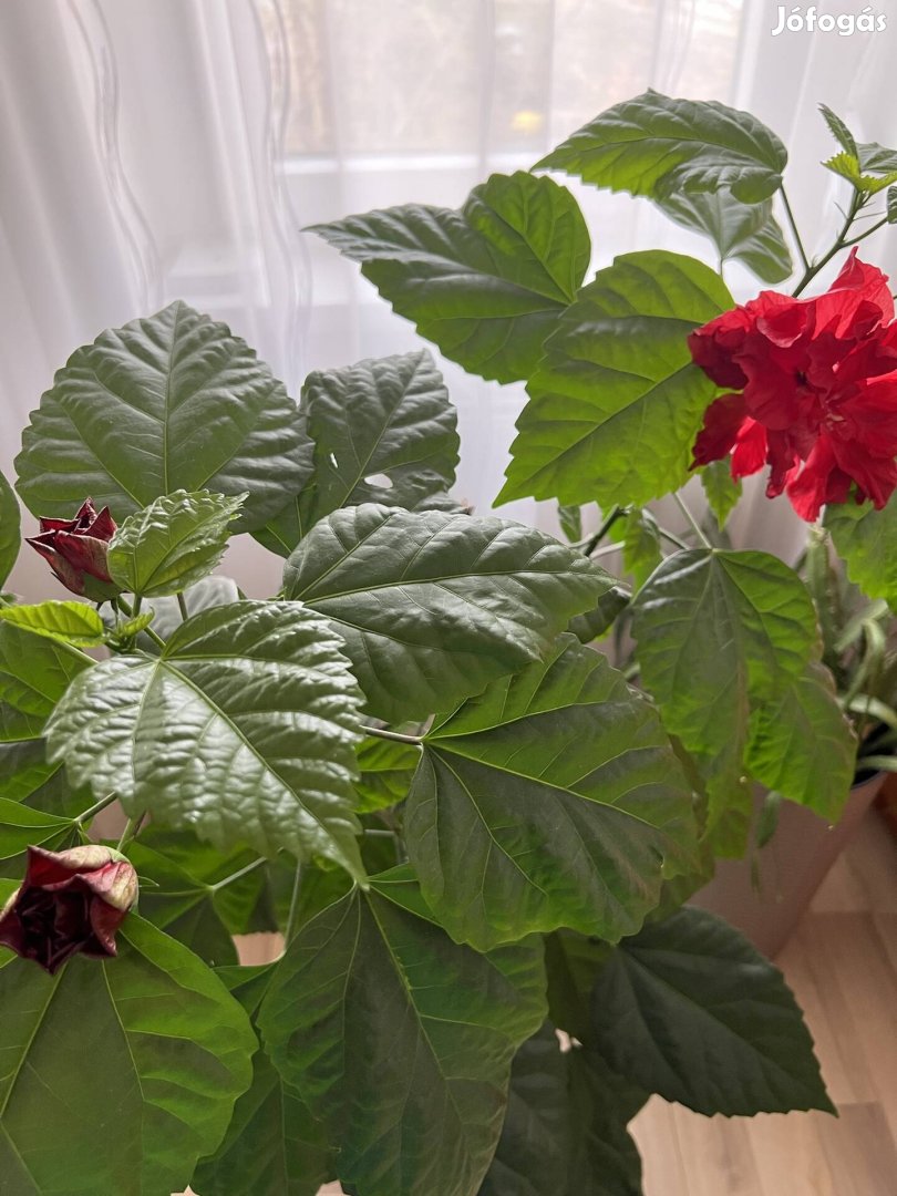 Eladó egy használaton kívüli, nagyon szép levelű és csodálatos élénk piros virágú nagy méretű hibiszkusz.