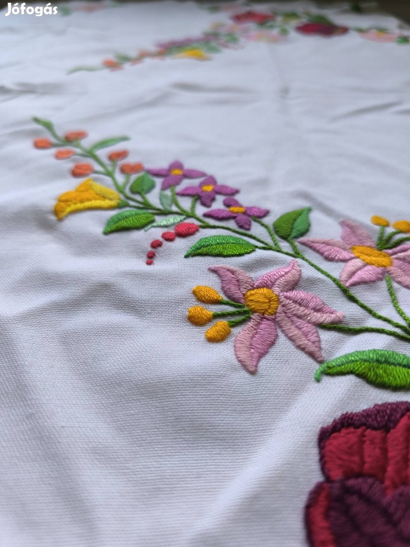 Csodaszép, kézzel hímzett kalocsai mintás asztal terítő.