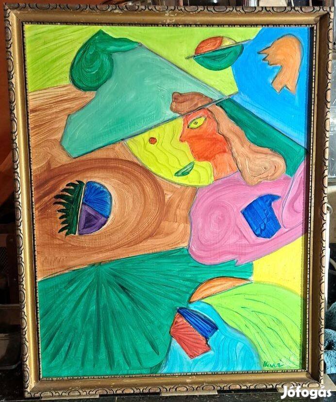 Hincz Gyula Dekoratív figurális modern festmény Olaj ,farost