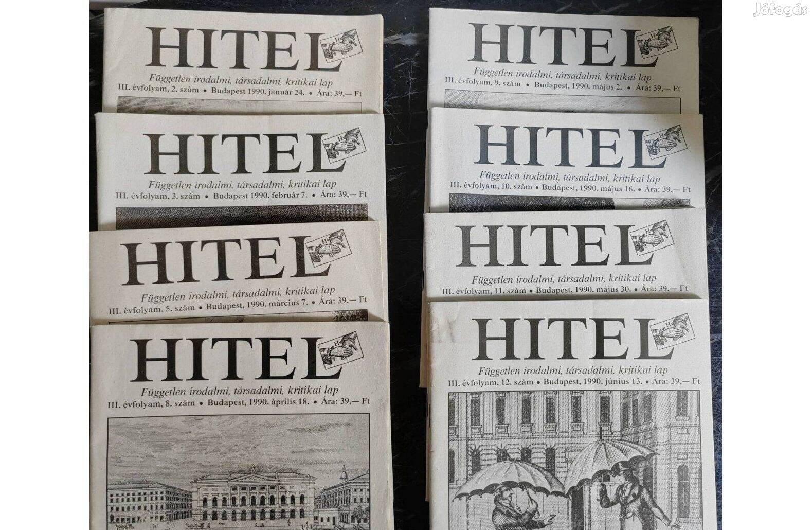 Hitel 1990-Független Irodalmi, Társadalmi, Kritikai Lap III. évfolyam, 2.,3.,5.,8.,9.,10.11.,12., összesen 8 db.