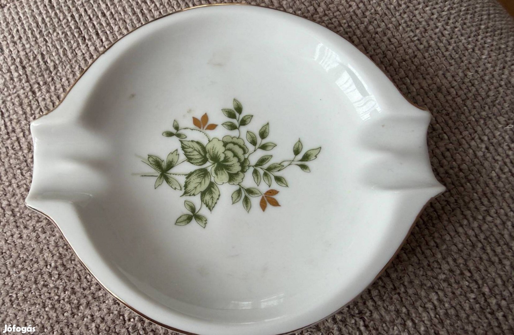 Hollóházi porcelán falitál / hamutál jelzett, aranyszegélyes