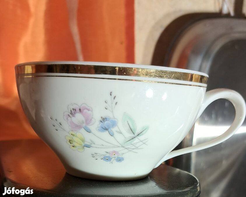 Hollóházi porcelán teáscsésze arany szegéllyel, virágmintával