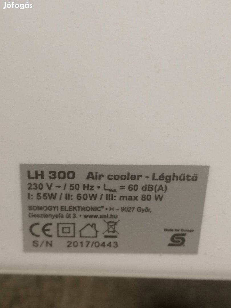 Home lh 300 léghűtő, egy szezont használt, jó állaporú, víz párologratással hűti a levegőt, nem úgy mint a klíma, nincs kültéri egysége.