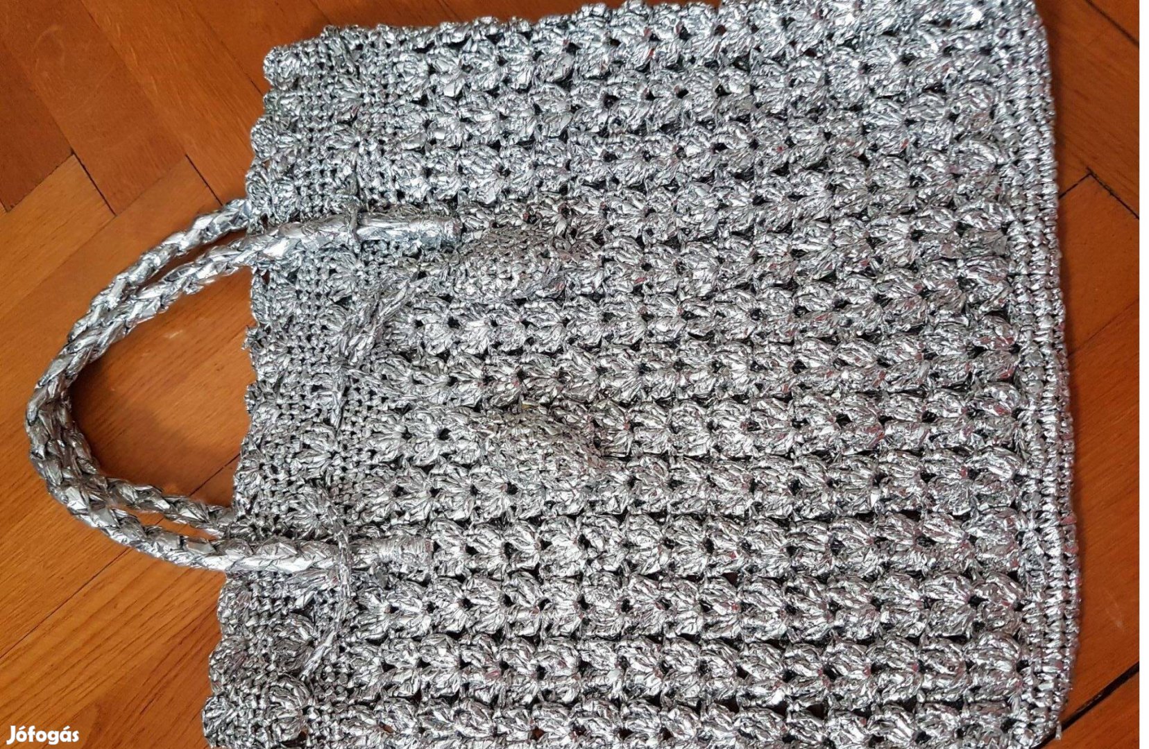 Horgolt ezüst színű szatyor 1500 Ft-ért eladó.