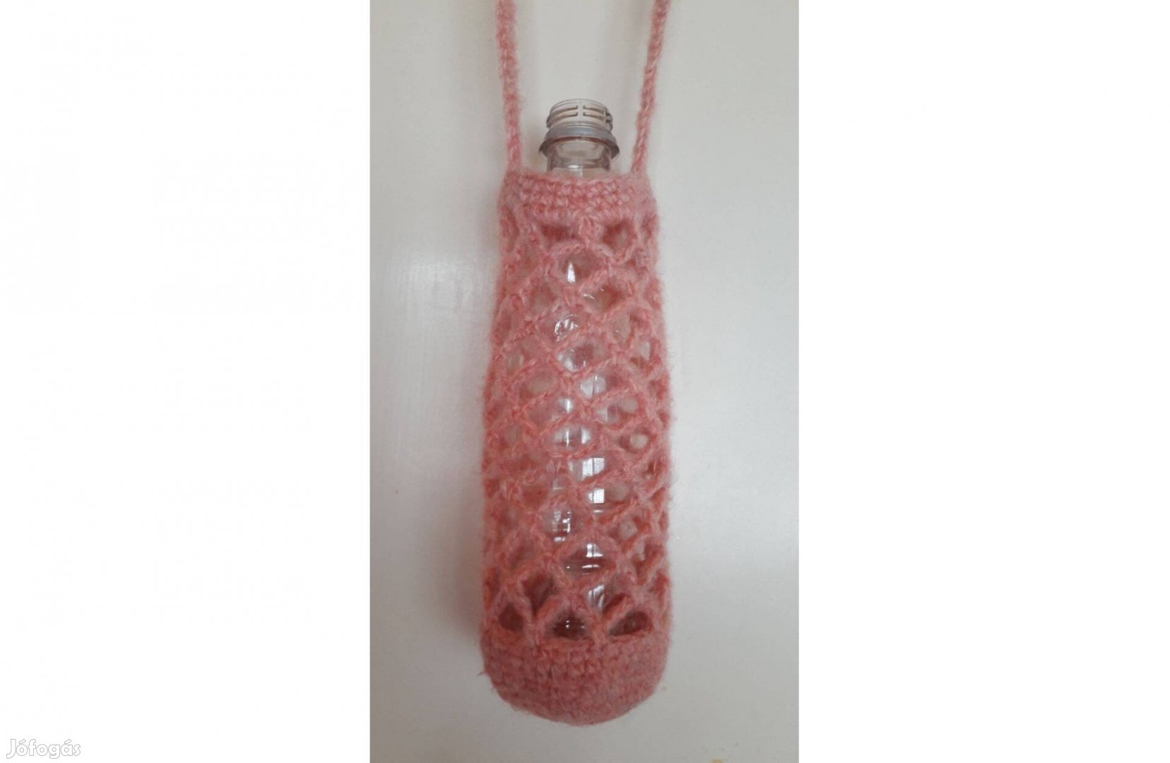 Horgolt rózsaszín palacktartó, kulacstartó új