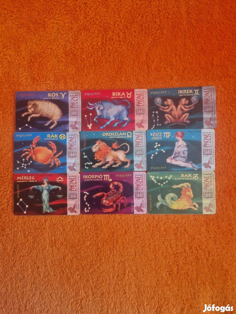 Eladó 1995-ben kiadott 9db magyar horoszkópos telefon kártya, budapesti személyes átadással, Revolutra utalás esetén postázom is Foxpost-tal.
