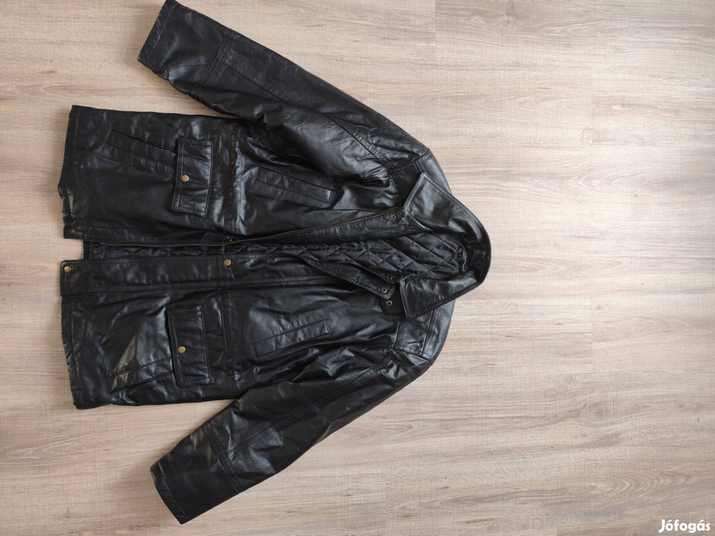 Hosszú fekete 54-s bőrkabát új állapotban Személyes átvételi lehetősé