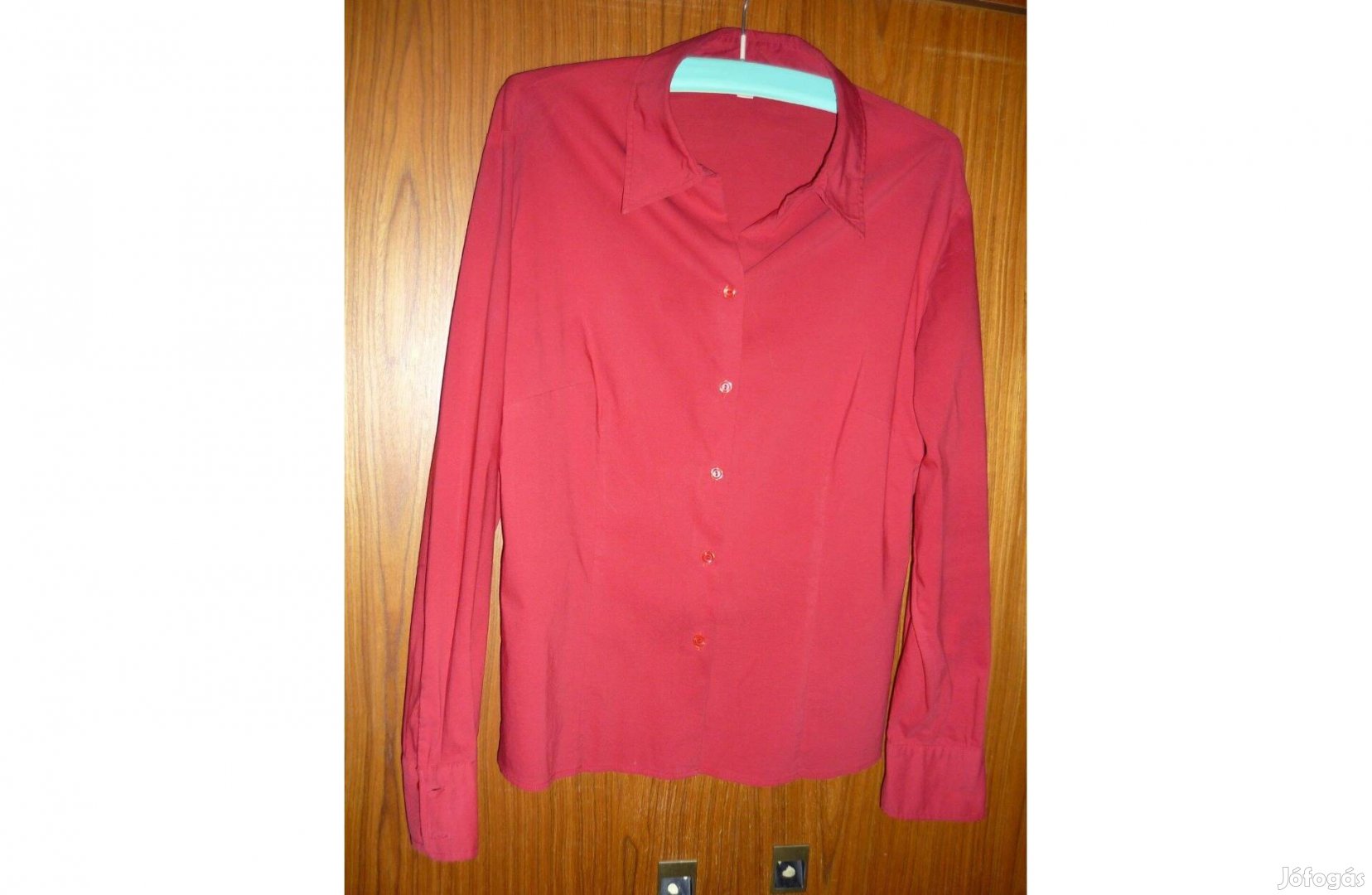 Hosszú ujjú, jó állapotú blúz piros színben, XL méretben eladó. Anyaga 69% pamut, 27 % poliamid, 4% elasztán. Vállszélesség 50 cm, mellbőség 110 cm. Nincs használatban.