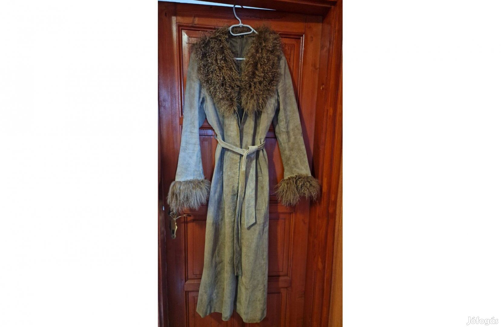 Hosszú, valódi hasított bőrkabát, valódi szőrmével. S-M méret.