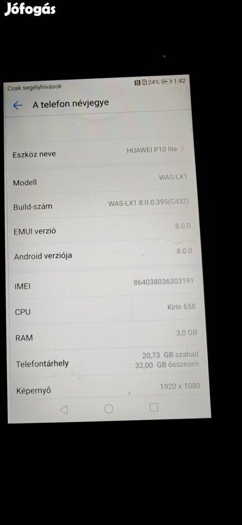 Eladó egy Huawei P 10 lite mobiltelefon. Csak a keszülek.