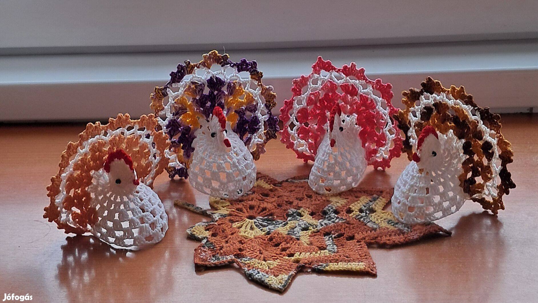 Saját készítésű horgolt tyúk 4 db egyben a terítővel együtt.