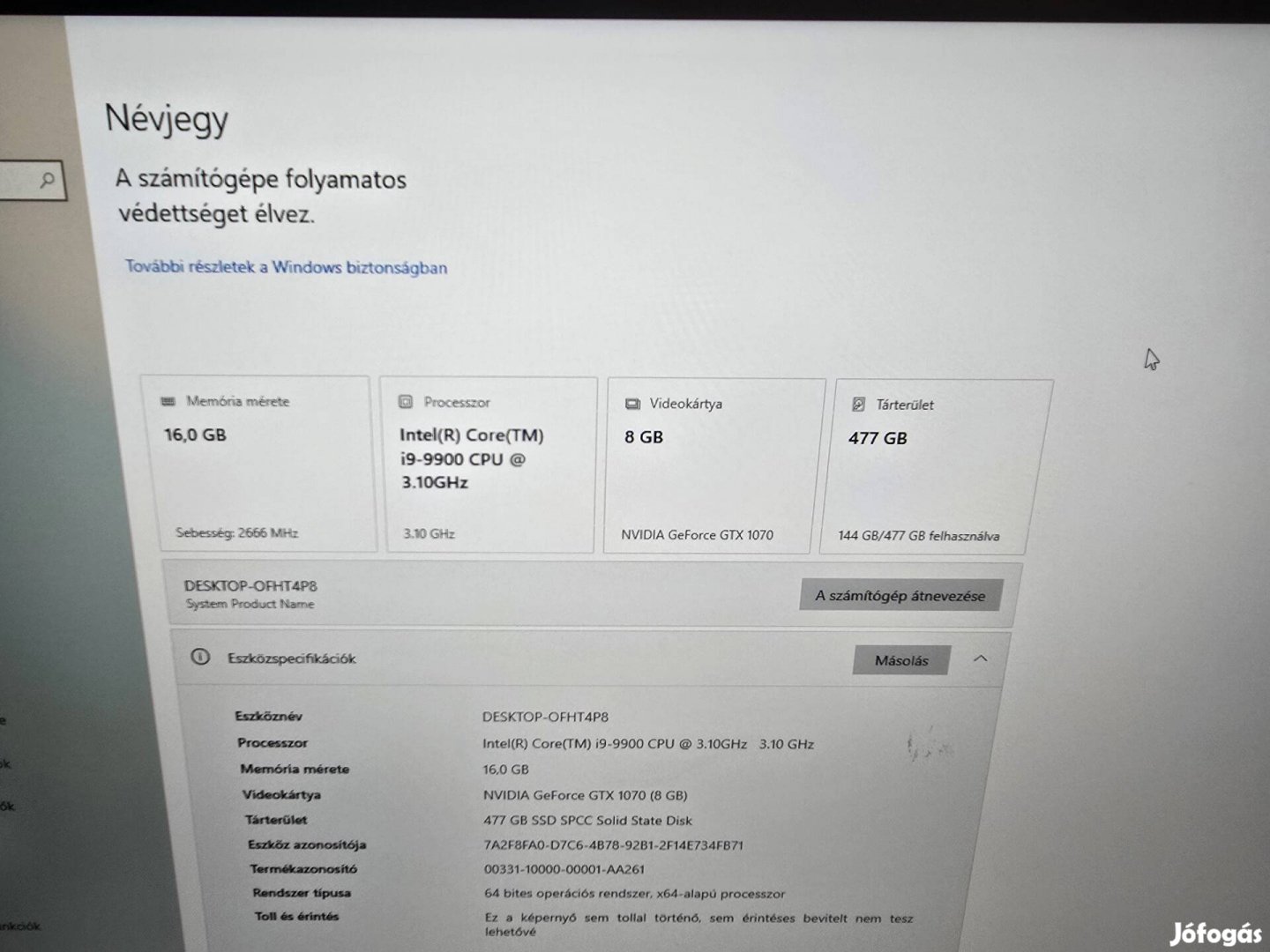 I9-9900 gamer asztali pc geforce Gtx1070 Videókártya 8gb
