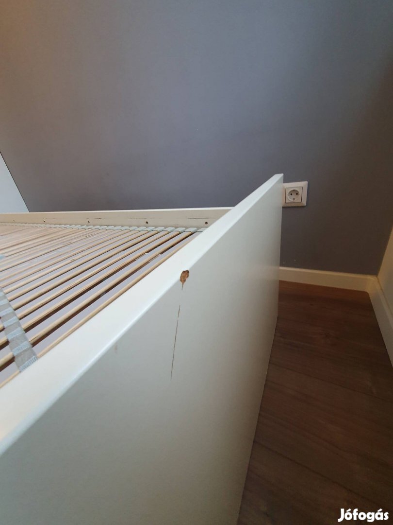Költözés miatt eladó egy 140x200 cm méretű Brimnes franciaágy ágyráccsal + a hároméves, 18 cm-es, nagyon jó állapotban lévő memóriahabos félkemény matraccal. Az ágyat végig mattacvédővel használtuk, igény szerint ez is vihető. A háttámlán egy szállításból eredő kisebb karcolás van, fotóztam.