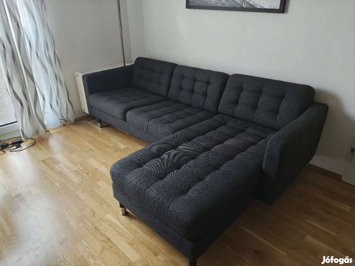 IKEA Landskrona 3 sz. sarokkanapé fekvőfotellal Gunnared szürke