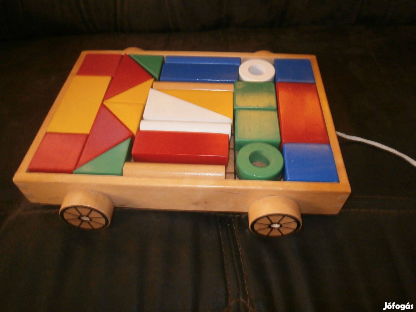 Eladó a képen látható IKEA Mula fa építőjáték gurulós kocsival .Egy gyermek által használt játék. Készségfejlesztő fa építőkocka szett húzható kocsival. Kiválóan fejleszti a gyermekek finommotoros készségeit, kreativitását és térérzékelését.