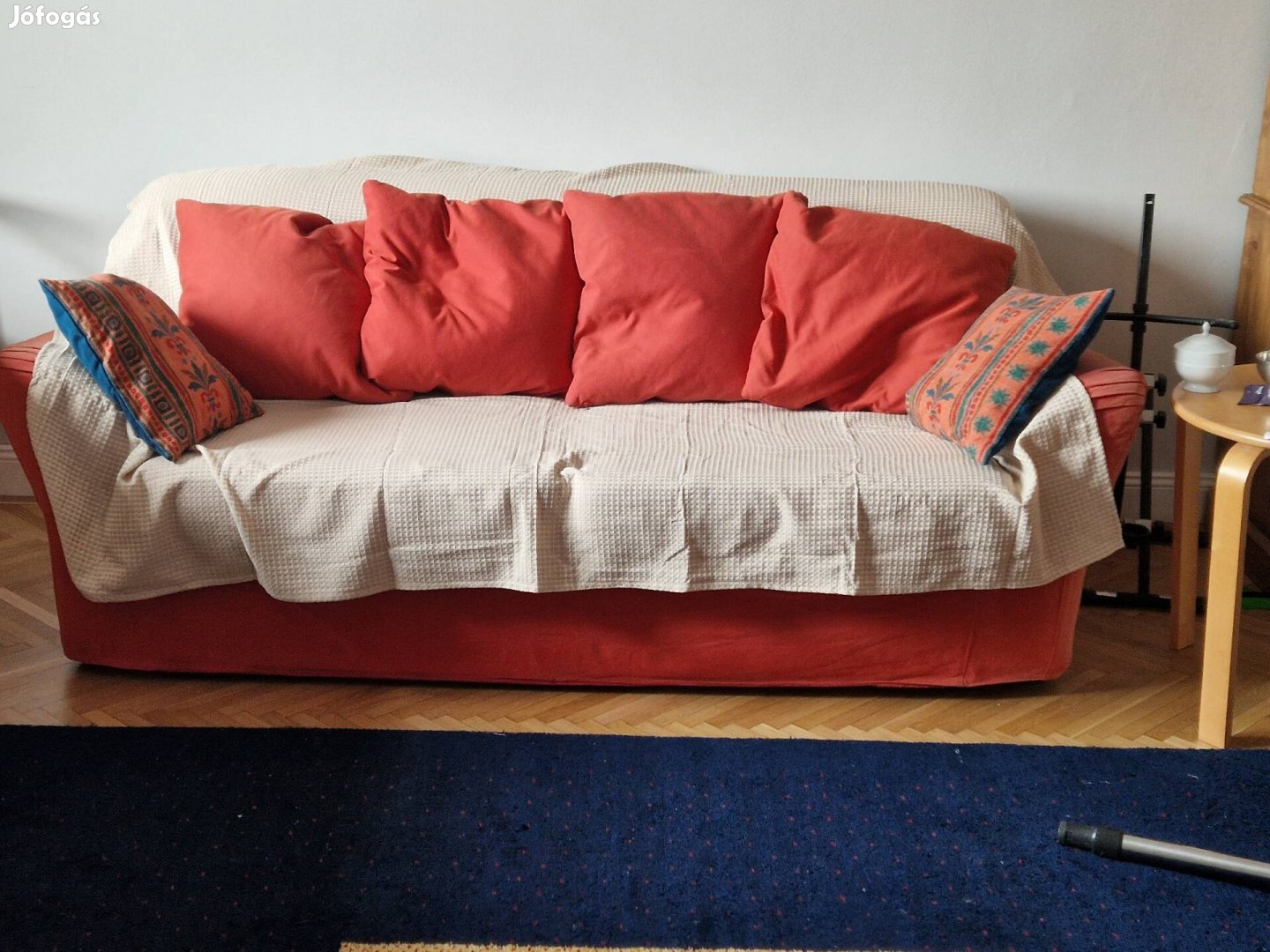 IKEA Tomelilla 3 szemelyes, agyazhato, piros szinu hasznalt, megkimelt allapotu kanape elado. Kanapehuzat erosen kopott (kanapehuzat cserelheto). Ules parnak jo allapotuak. Kinyithato agyszerkezet hibatlan, fekvo matrac deformalt. Kepek csatolva. 14. ker