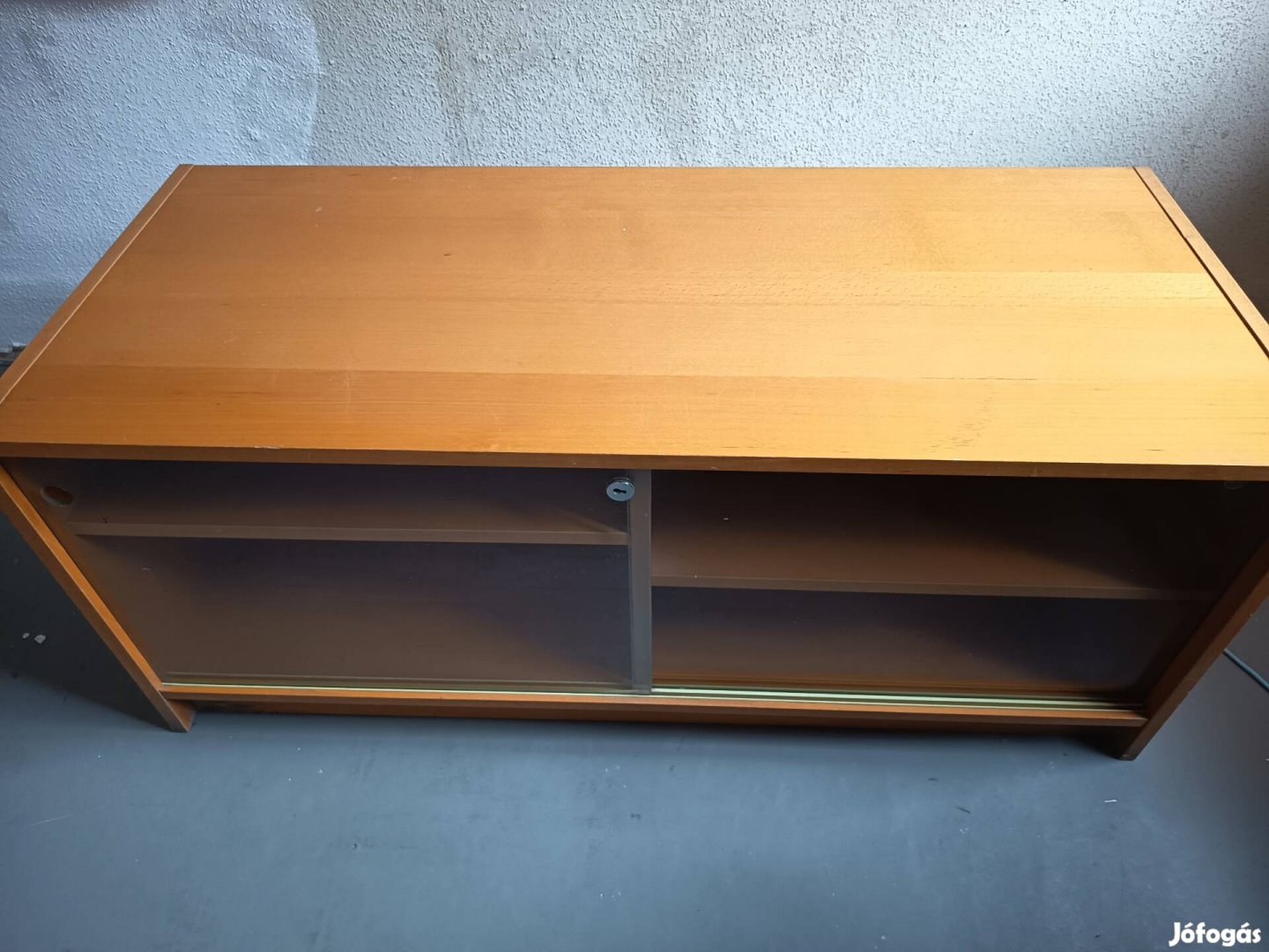 118x50*50. Két üveg toloajtos. Nem préselt fa az anyaga, hanem normal butorlap. Hibatlan allapotban. Kispesten atvehetö.