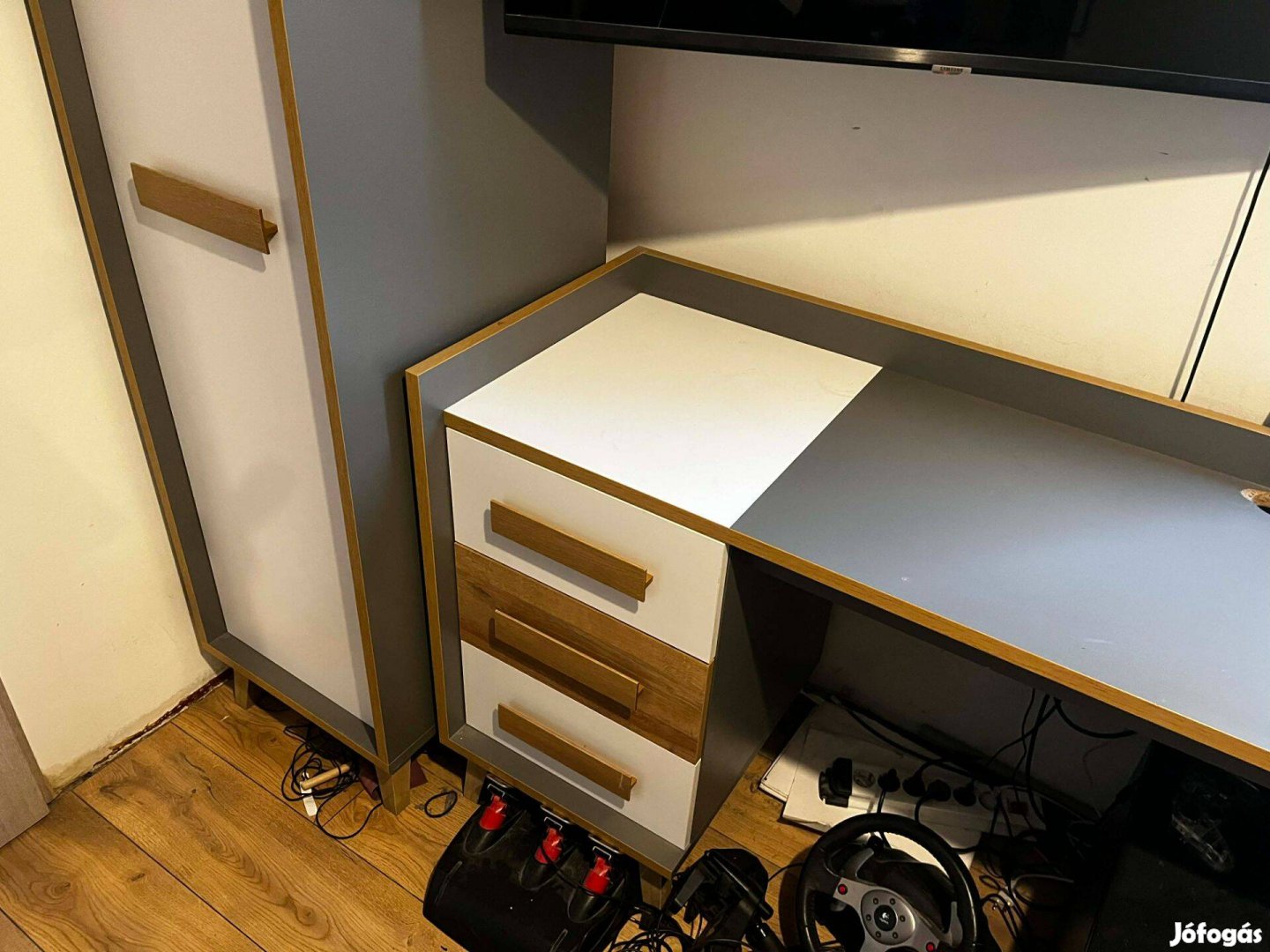 Eladó a képen látható szekrénysor, van hozzá egy szőnyeg is . Jelenleg szanaszét van a lakásban, amiatt nincs róla egyben fotó, de nagyon szép, jó minosegu bútor, csak kinőtte a gyerek. Méreteket kérésre elküldöm , addig is írom, panellakashoz kell nézni a képeket Szállításban nem tudok segiteni
