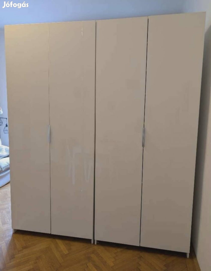 Ikea Pax sarokpántos gardrób szekrény 200 cm szélességben, Komplement belső kiegészítőkkel, Fardal magasfényu sarokpántos ajtókkal .
