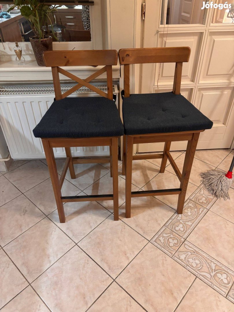 2 db ikea fa bárszék,kényelmes, használható kivitel, az egyik háttámlájáról hiányzik az X háttámla rész. ettől még tökéletesen funcionál. Ára: 1 db 9.000 Ft, két db 17.000 Ft