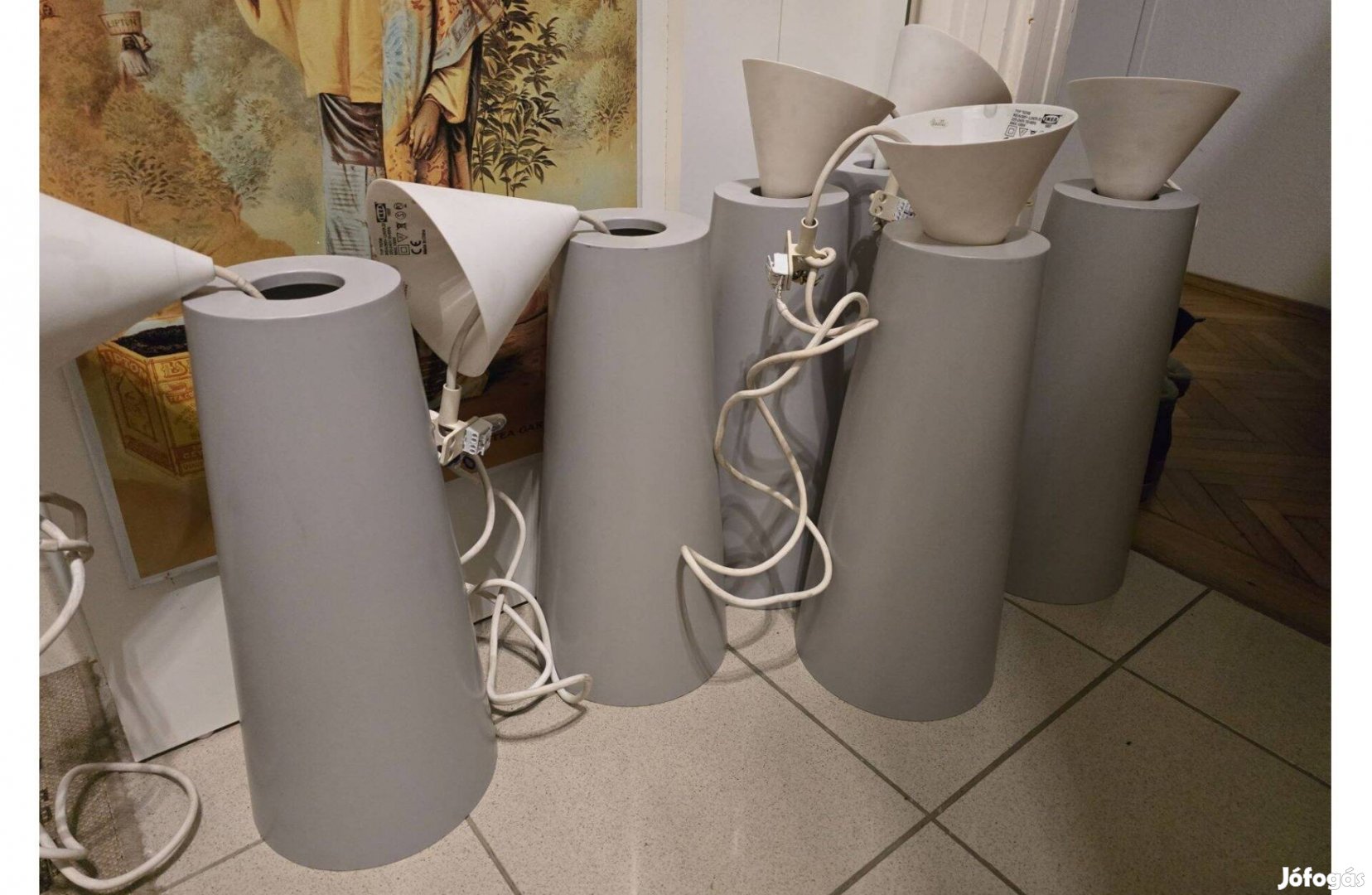 Szürke, fém mennyezti lámpák, ikeás, darabja 10000 ft. 6 db van.