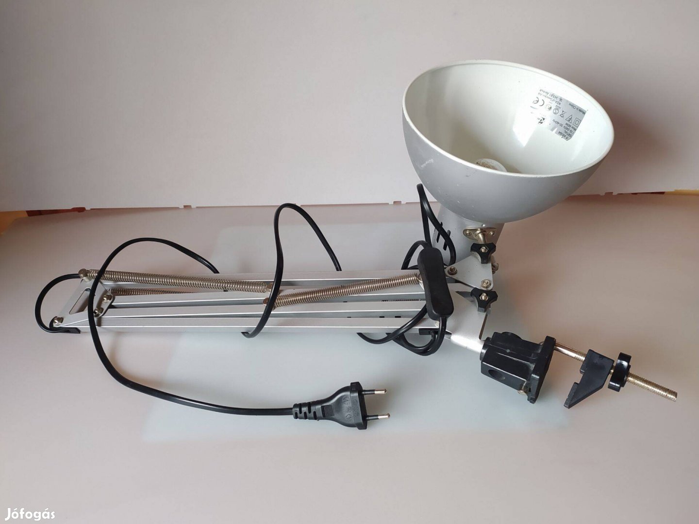 Ikea világos szürke, fém, rugós asztali lámpa kapcsolóval