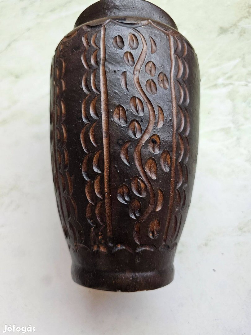 Eladó a képeken látható, gyűjteményi állapotú, sötétbarna kerámia váza.