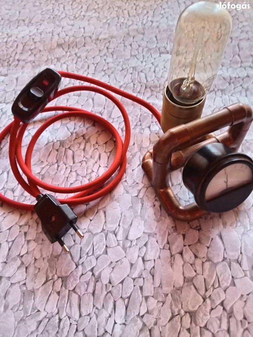 Loft, ipari stílusú lámpa rézcsövekből, nanométeres díszítéssel. Természetesen működőképes, gyönyörű fénye van. Csak személyes átvétel Budapest IV vagy XIII kerületben.
