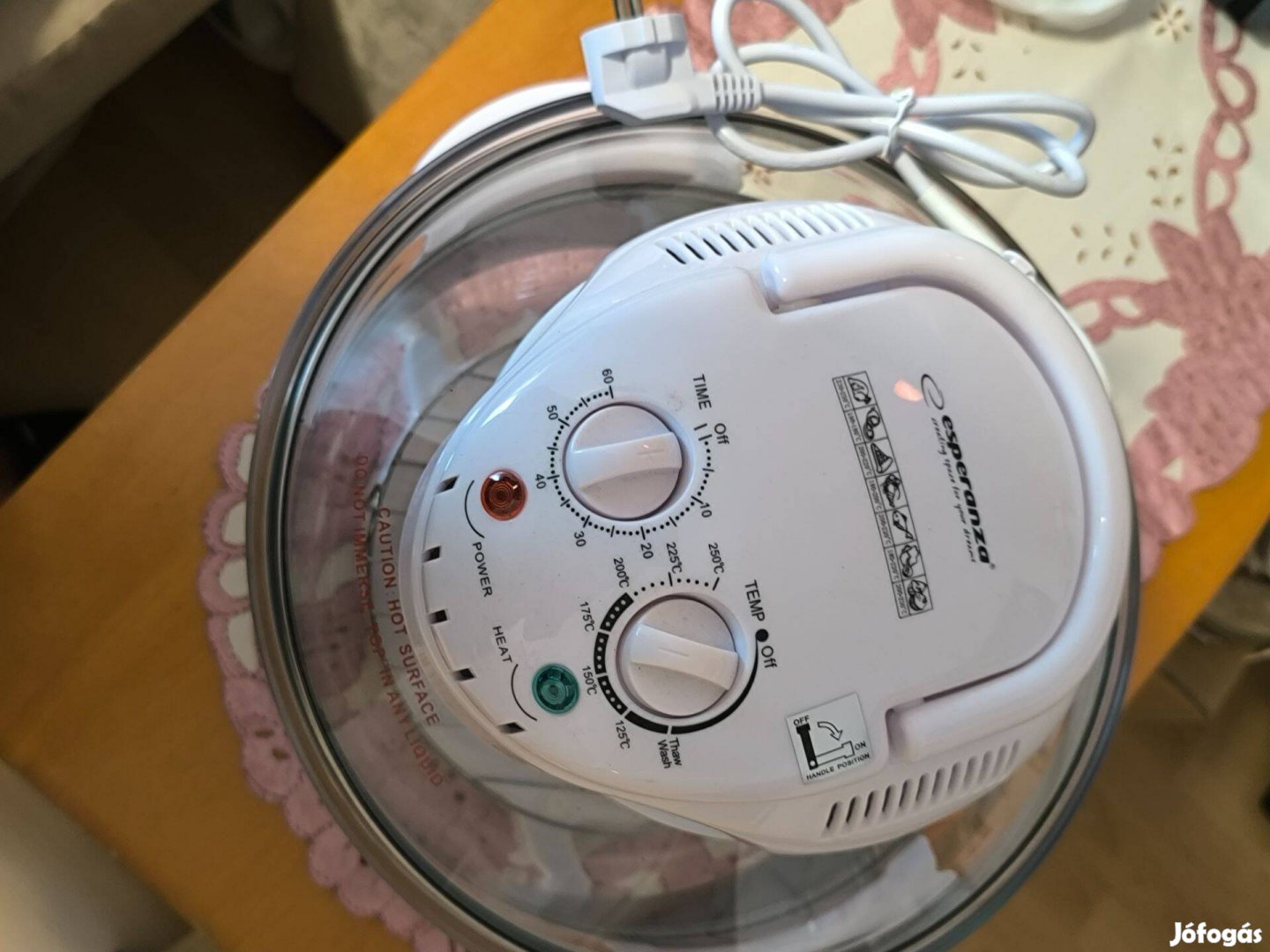 Kihasználatlanság miatt eladó jó állapotú sütő. Tökéletes állapotban van ahogy a képeken látható. Mini légkeveréses sütő.az eredeti halogén fűtőelemeknek köszönhetően gyorsabban készül el az étel miközben megőrzi az ízeket és tápanyagokat. Sütésre főzésre párolásra és kiolvasztásra is alkalmas. Bővítő gyűrűvel a kapacitás 6 literrel növelhető. Nem akarom hogy sérüljön így csak személyes átvétel lehetséges a 19 kerületben.