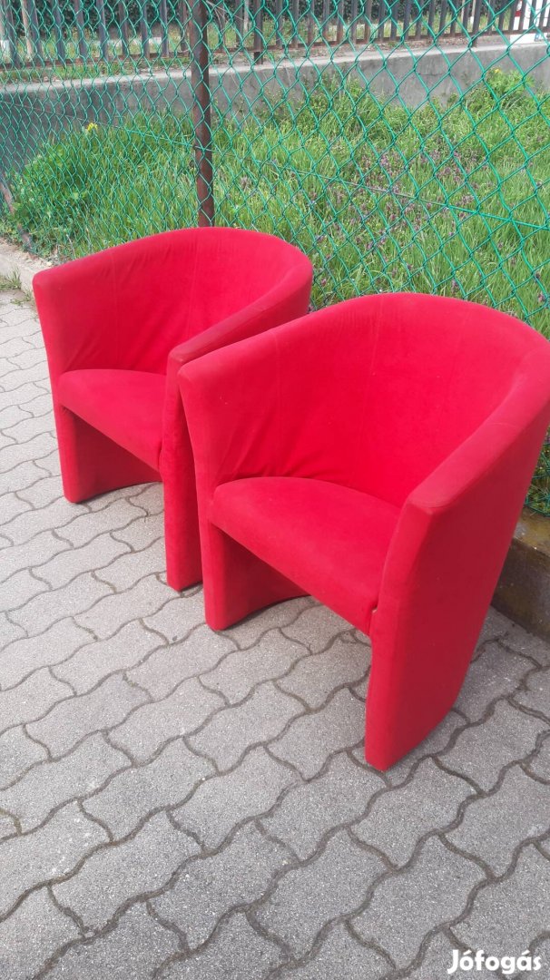 Ingyenesen, sürgősen elvihető 2 piros bársony modern kagyló fotel Zuglóból. Az ülőfelületük bemélyedt, valószínűleg helyre hozhatók. Nincsenek leszakadva, csak vízszintesre kell erősíteni. Egyébként, jó állapotúak, nem serültek. Kis helyigényűek.