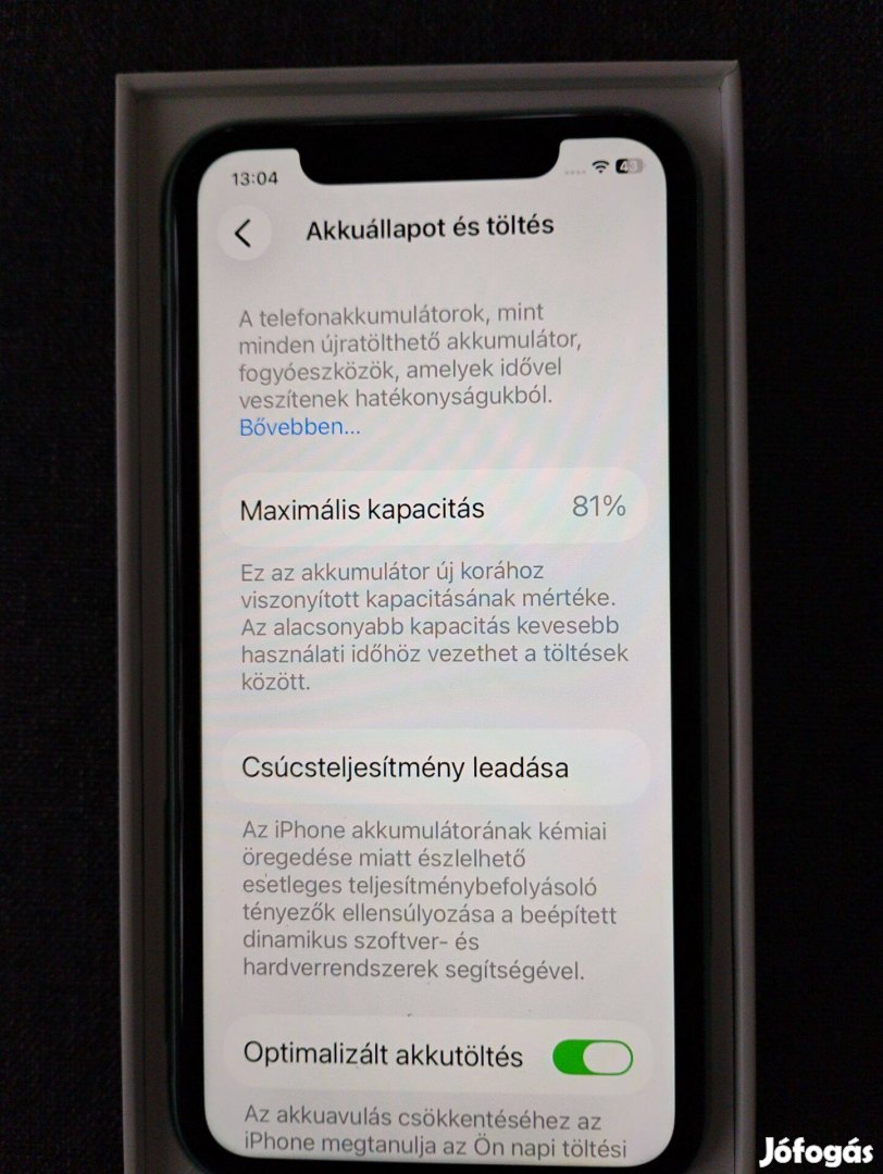 Bármiféle sérüléstől, kopástól, horzsolástól, karctól, stb. mentes. Akku állapota 81%.