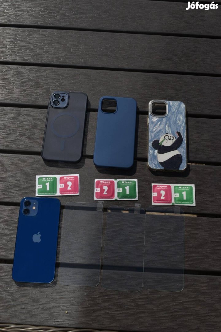 Eladó végig tokkal és üvegfóliával védett, megkímélt állapotú kártyafüggetlen Iphone 12 128GB kék színben, 3 db üvegfóliával, 3 db tokkal, töltővel. Kb. 1 hónapja emelt kapacitású, 3300mah-s akkumulátor lett belerakva, így a gyárinál is hosszabb üzemideje lett.