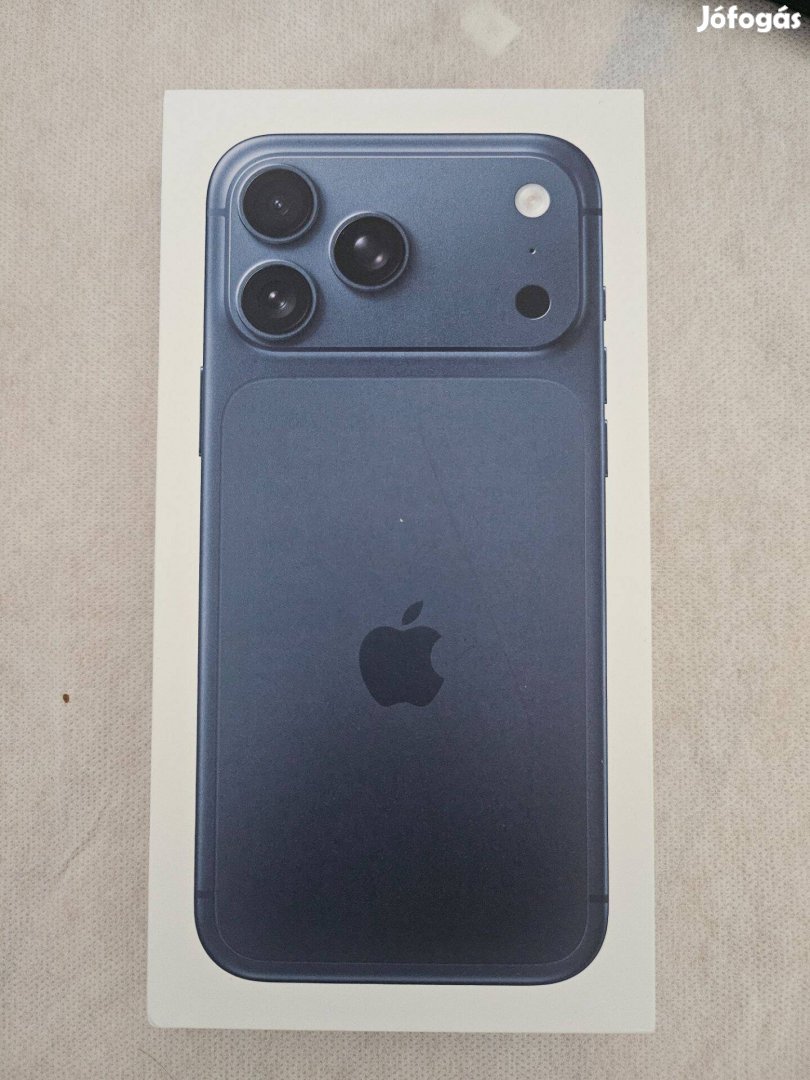 Vadonatúj, bontatlan dobozában eladó Iphone 17 Pro Max - 256 GB méretű, kártyafüggetlen sötétkék színben.