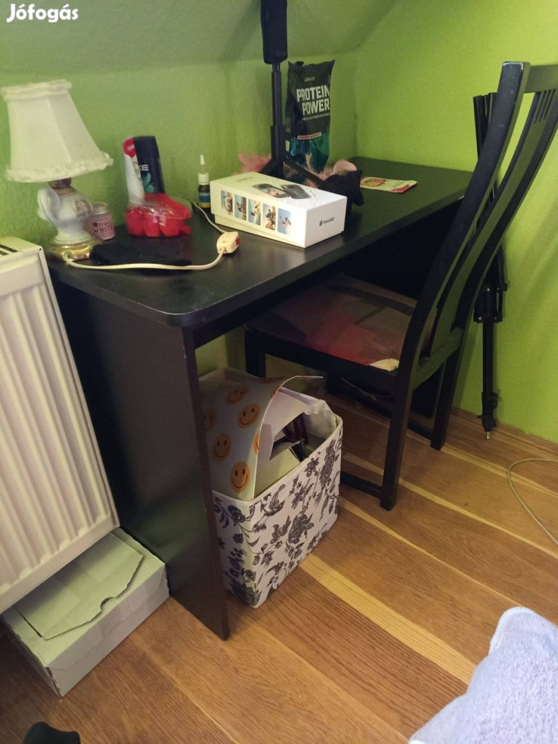 Költözés miatt eladó fekete íróasztal. Mérete: 100*40 cm, magassága 75 cm. Ára: 3000 Ft