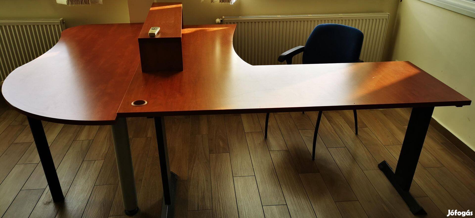 A bal oldali íves asztal már elkelt, az "L" alakú asztal kis pakolófakkal 7.000 Ft.